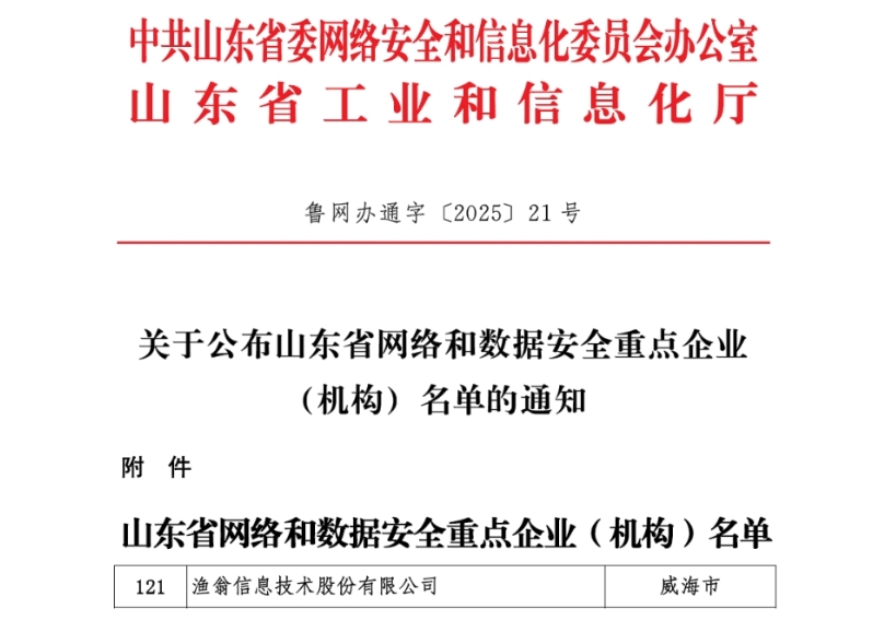 近期,山东省委网信办、山东省工信厅正式公布“山东省网络和数据安全重点企业(组织)名单”。本次评选共遴选出147家重点企业和33家重点组织,bwin必赢国际信息凭借在密码技术领域的自主创新实力、全栈式数据安全解决方案及突出的行业贡献成功入选。